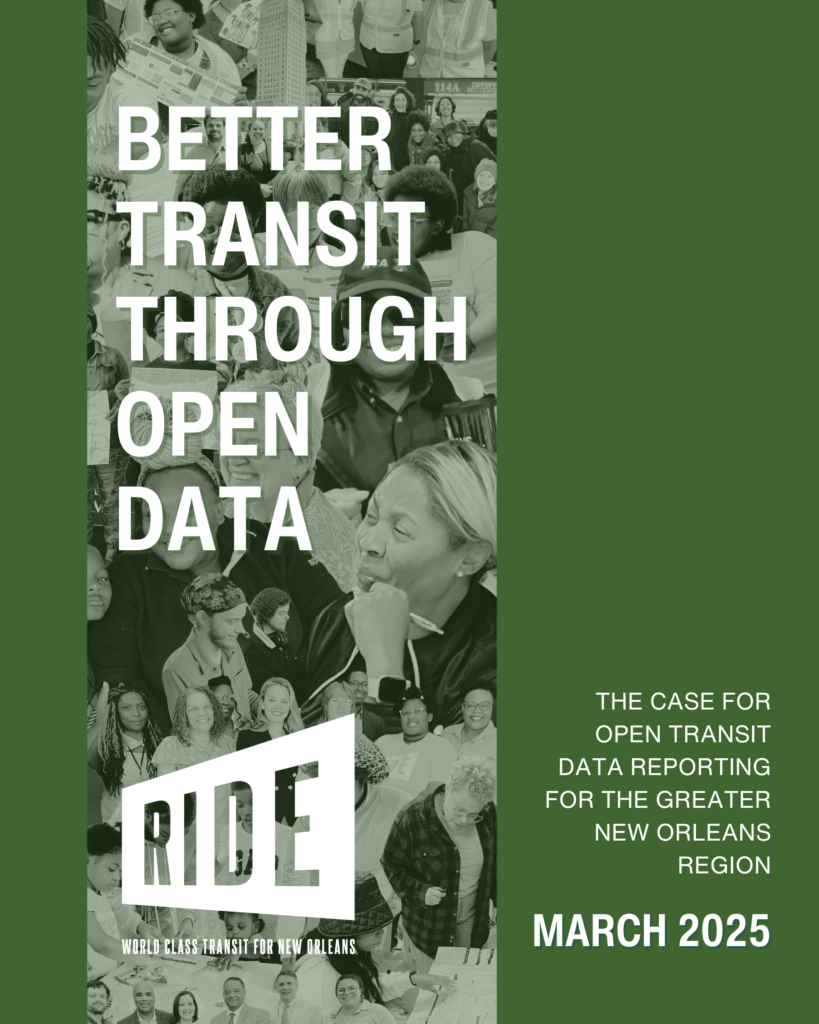 This report explores the powerful role that accessible, open data can play in transforming public transit in New Orleans, driving greater transparency, equity, and accountability. Public transit is a cornerstone of community life, yet many riders lack the necessary information to advocate for improvements. When transit agency data is publicly available, riders, community leaders, and policymakers can better identify system gaps and challenges. This report includes recommendations on how the Regional Transit Authority (RTA) can enhance its data practices and create a more transparent transit system.